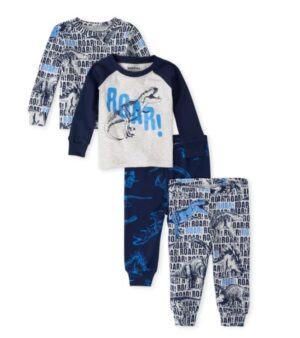 Glow in the Dark -Boys Dino Snug Fit Cotton 4-Piece Pajamas