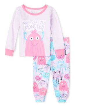 Girls Cute Monster Snug Fit Cotton Pajamas