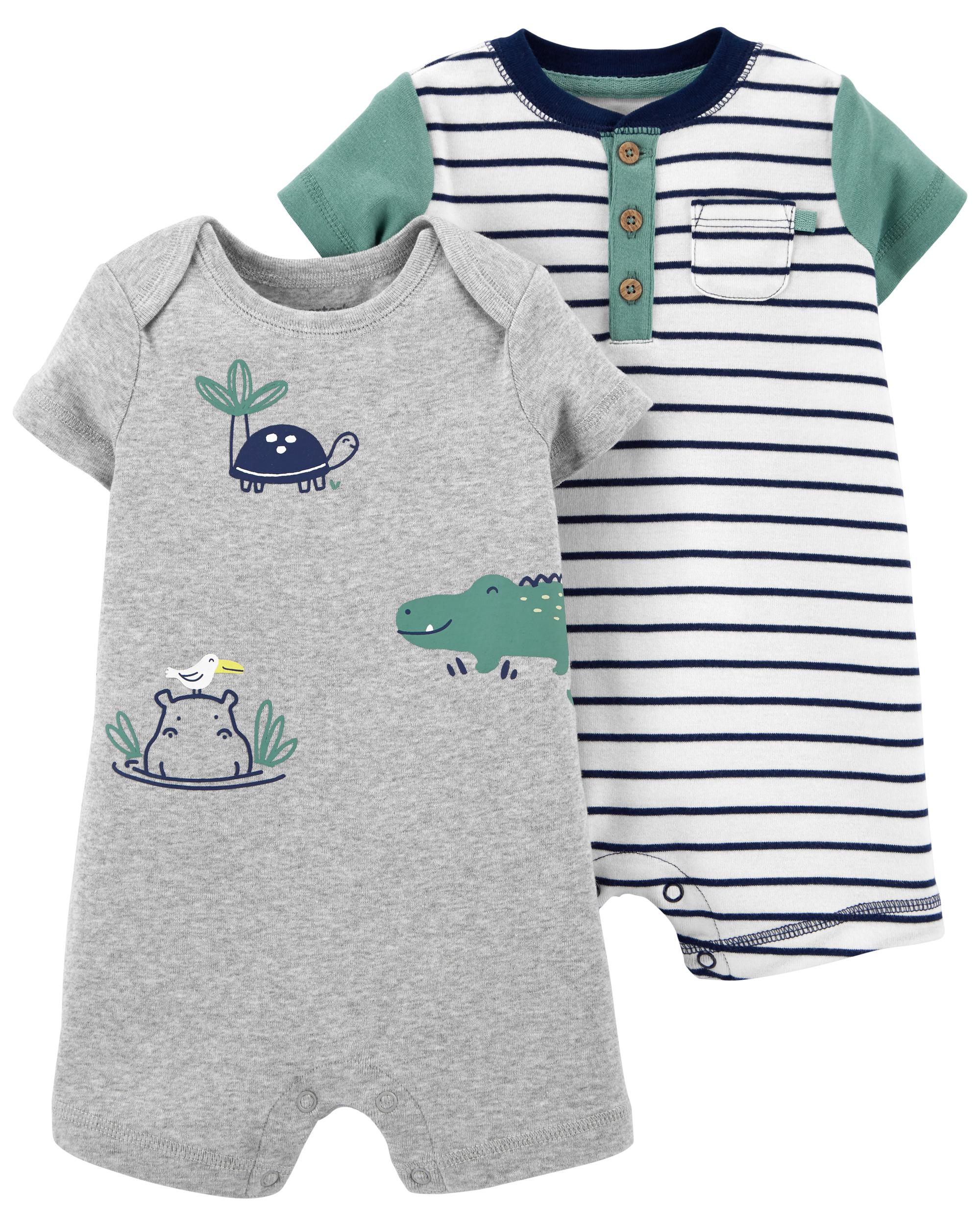 Crafted in soft cotton with snaps at the legs, these rompers get him ready in no time!