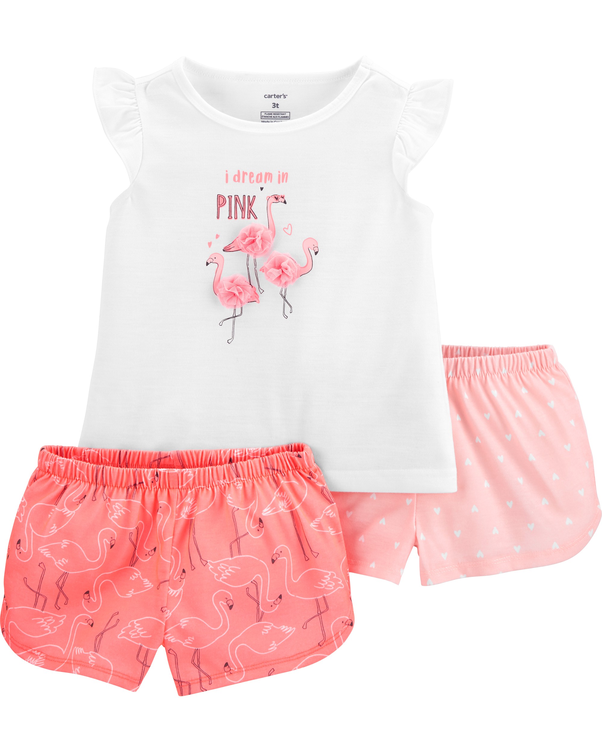 A set of three makes bedtime fun and easy! Chemically treated? No way! Carter’s polyester is flame resistant… Phew!