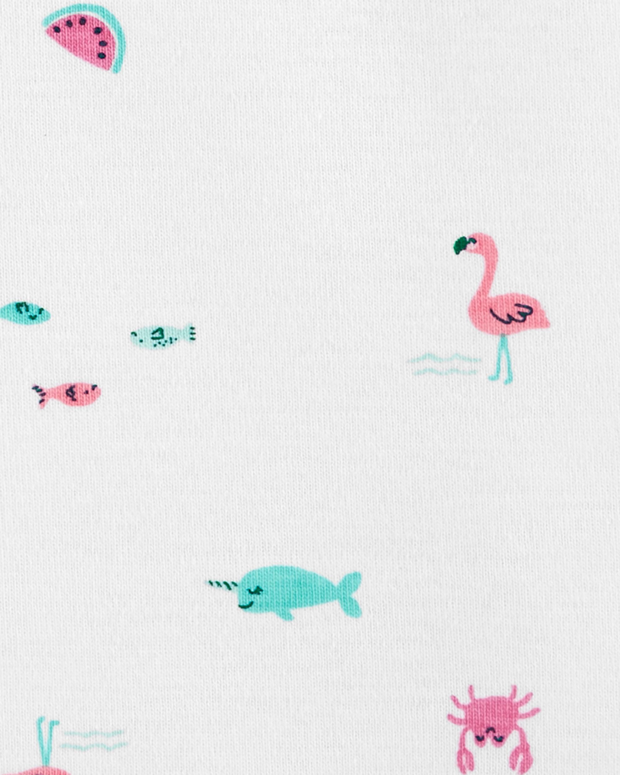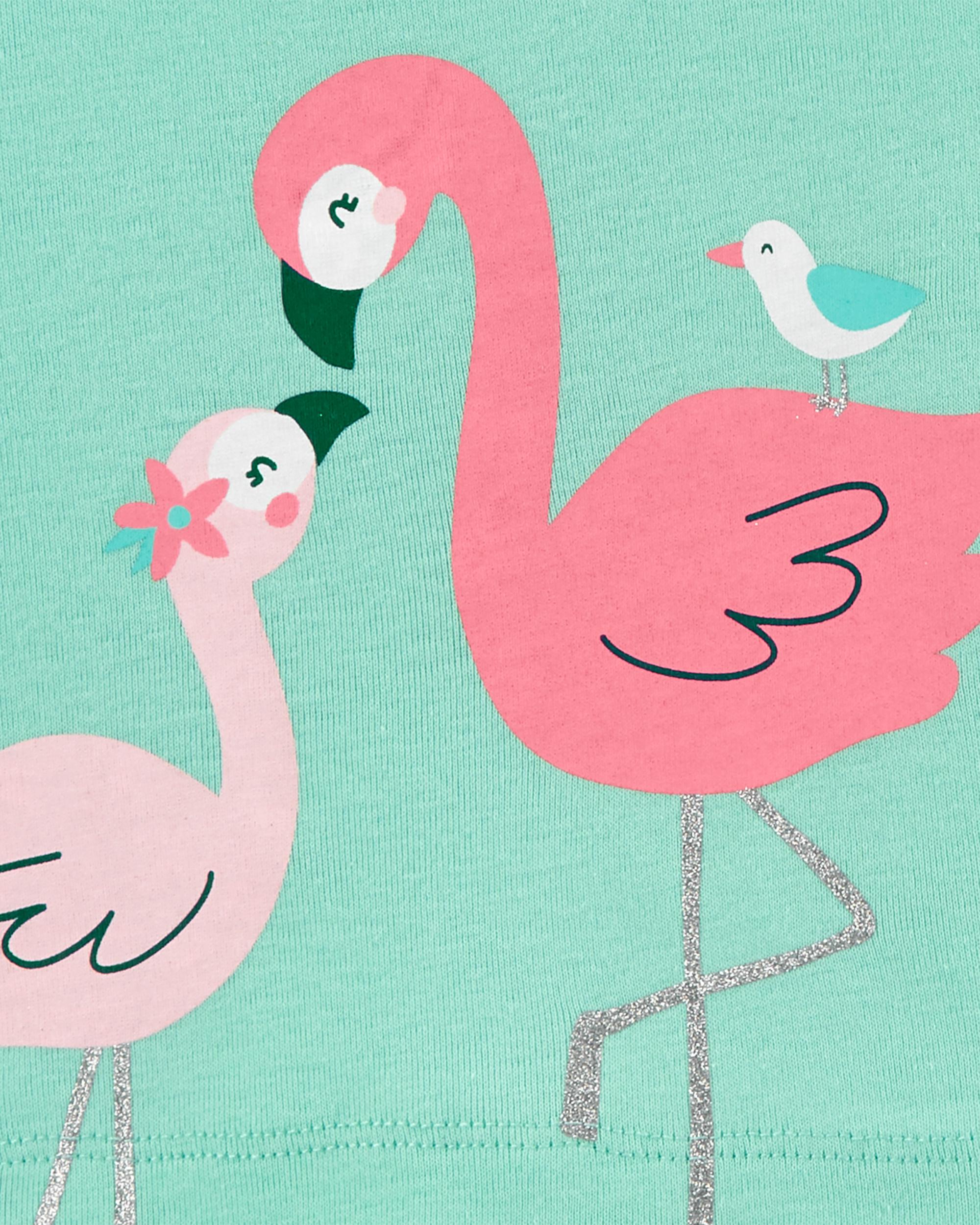 Crafted in soft cotton and pretty prints, this set is complete with a flamingo flutter tee, coordinating bodysuit and pull-on gingham pants.