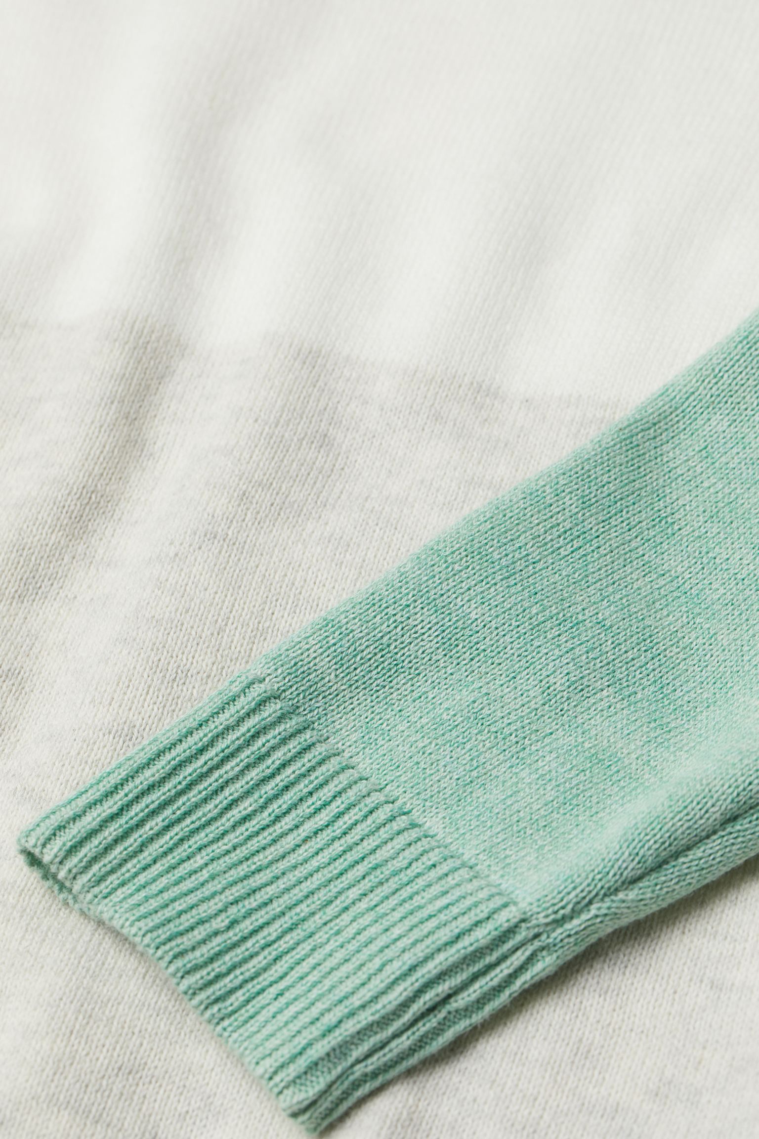 Jacquard-knit sweater in soft cotton fabric with long sleeves and ribbing at neckline, cuffs, and hem.