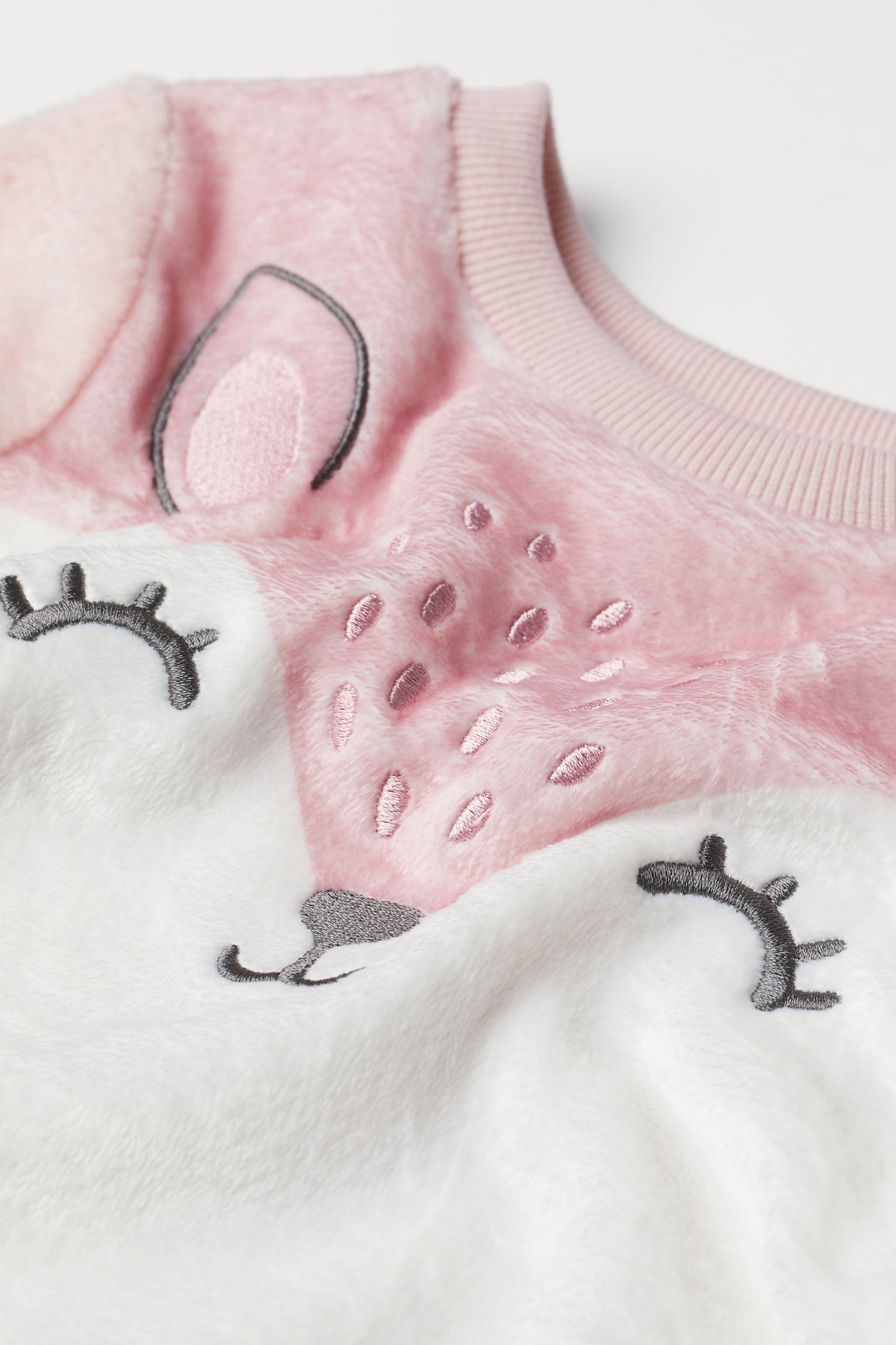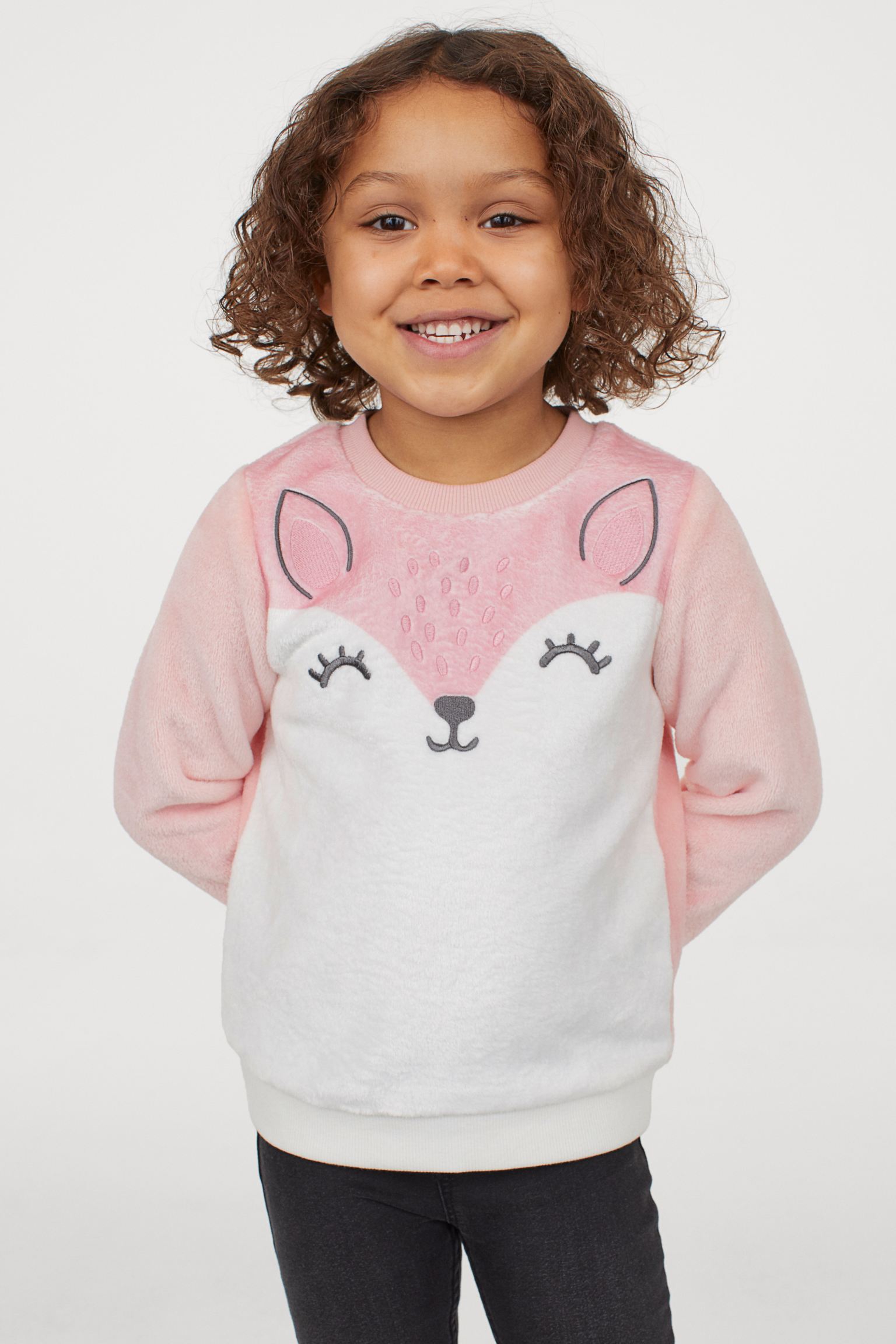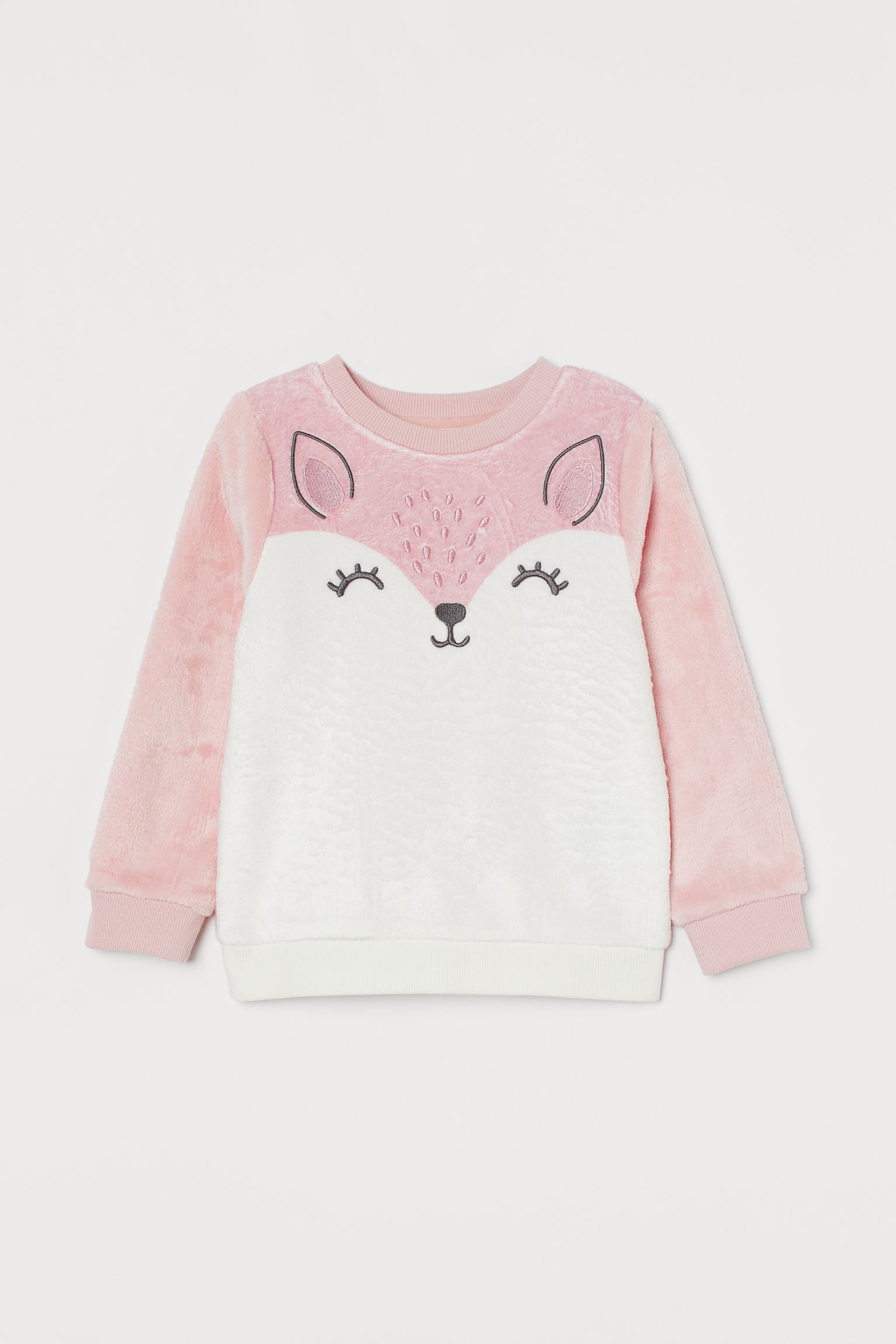 Long-sleeved top in soft fleece with a printed design. Ribbing at neckline, cuffs, and hem.