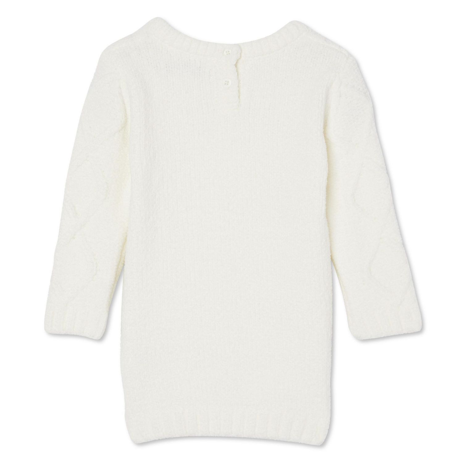 She’ll look cute and feel cozy in George baby girls’ cable knit sweater dress. Composed of warm cable knit, it’s styled with a crew neckline, long sleeves and a two-button closure on the back.
