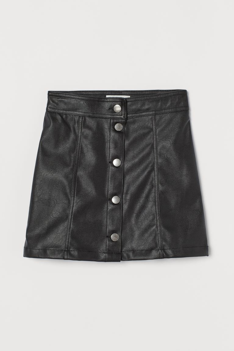 A-line skirt in cotton-blend twill. Buttons at front and mock pockets.