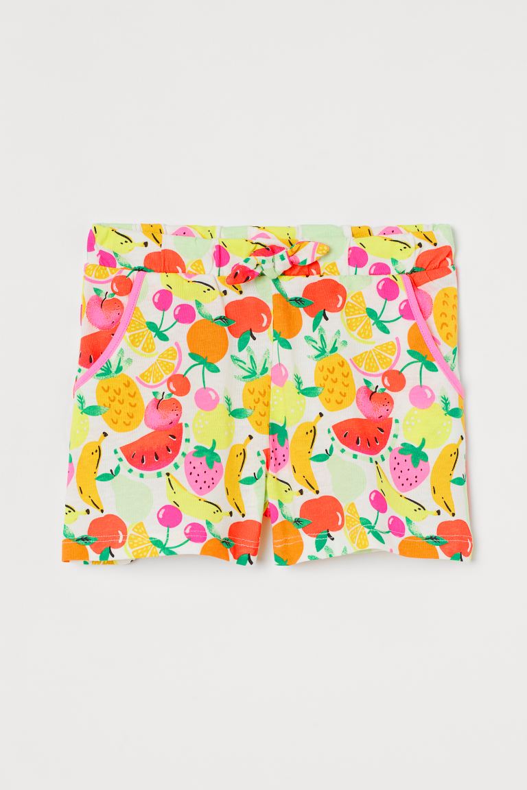 Shorts in soft cotton jersey. Elasticized waistband, decorative bow at waist, and front pockets.