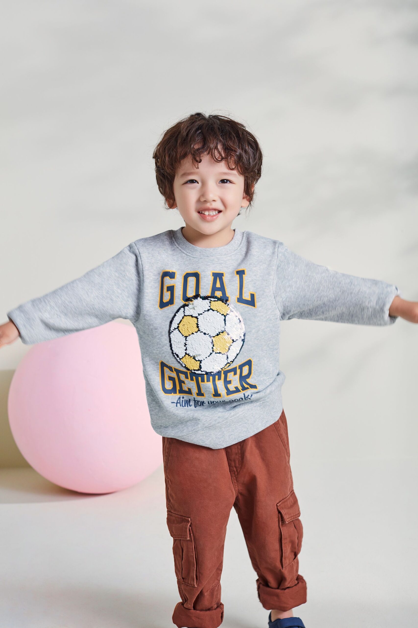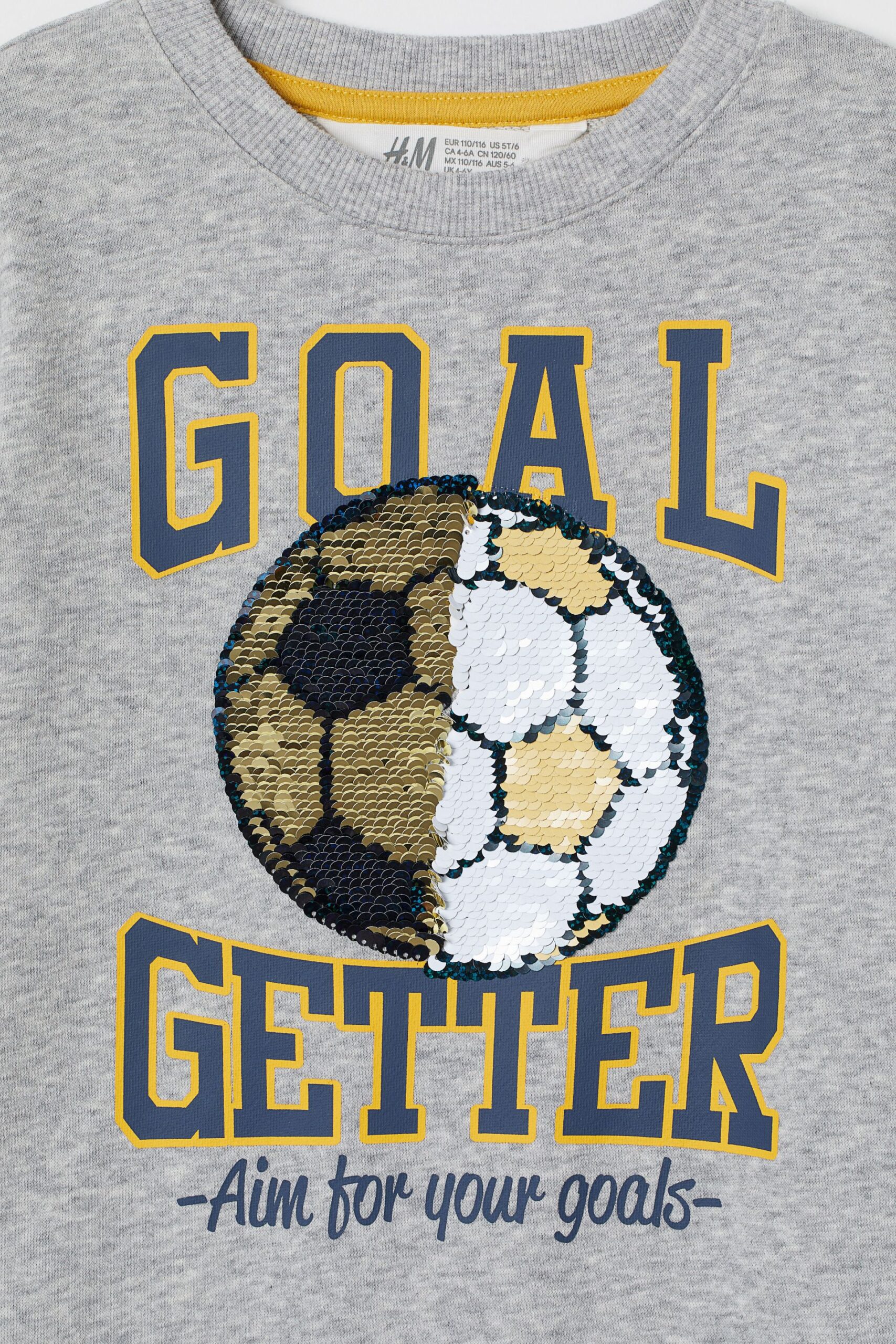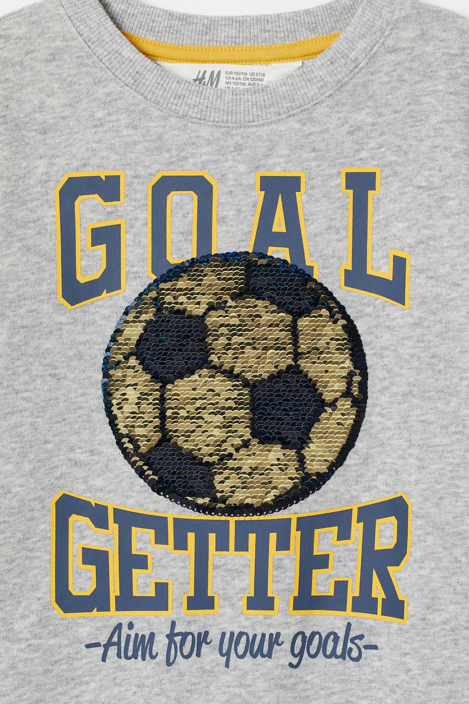 Soft sweatshirt with a printed design and reversible-sequins at front (size 2-3Y with regular sequins). Long sleeves and ribbing at neckline, cuffs, and hem.