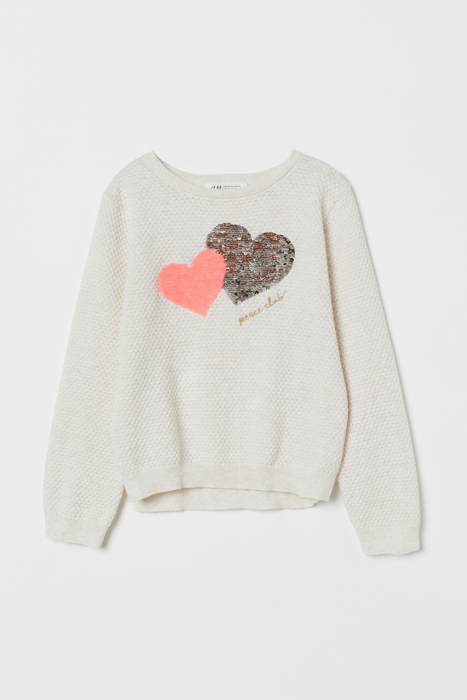 Sweater in soft, textured-knit cotton with a motif at front. Ribbing at neckline, cuffs, and hem.