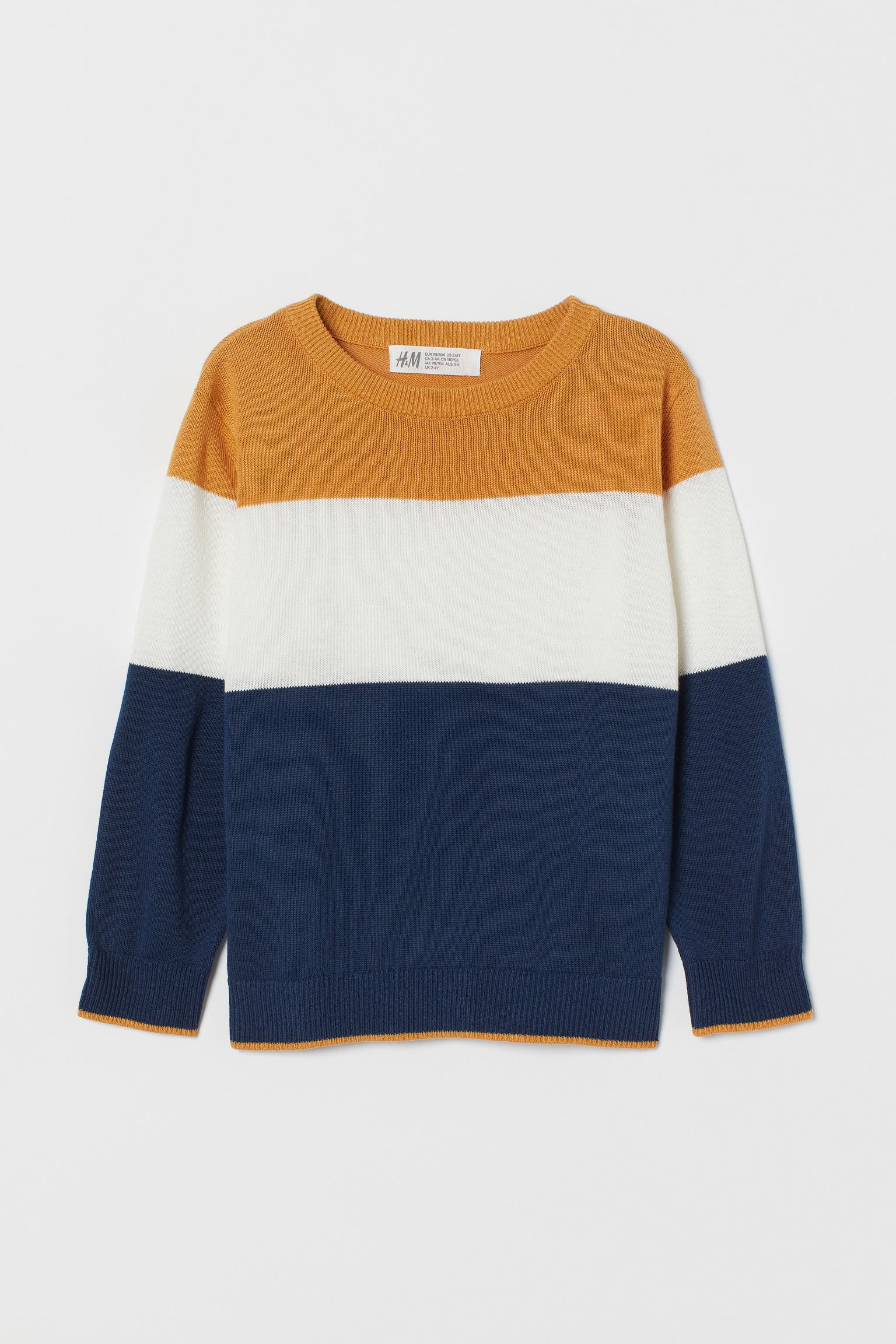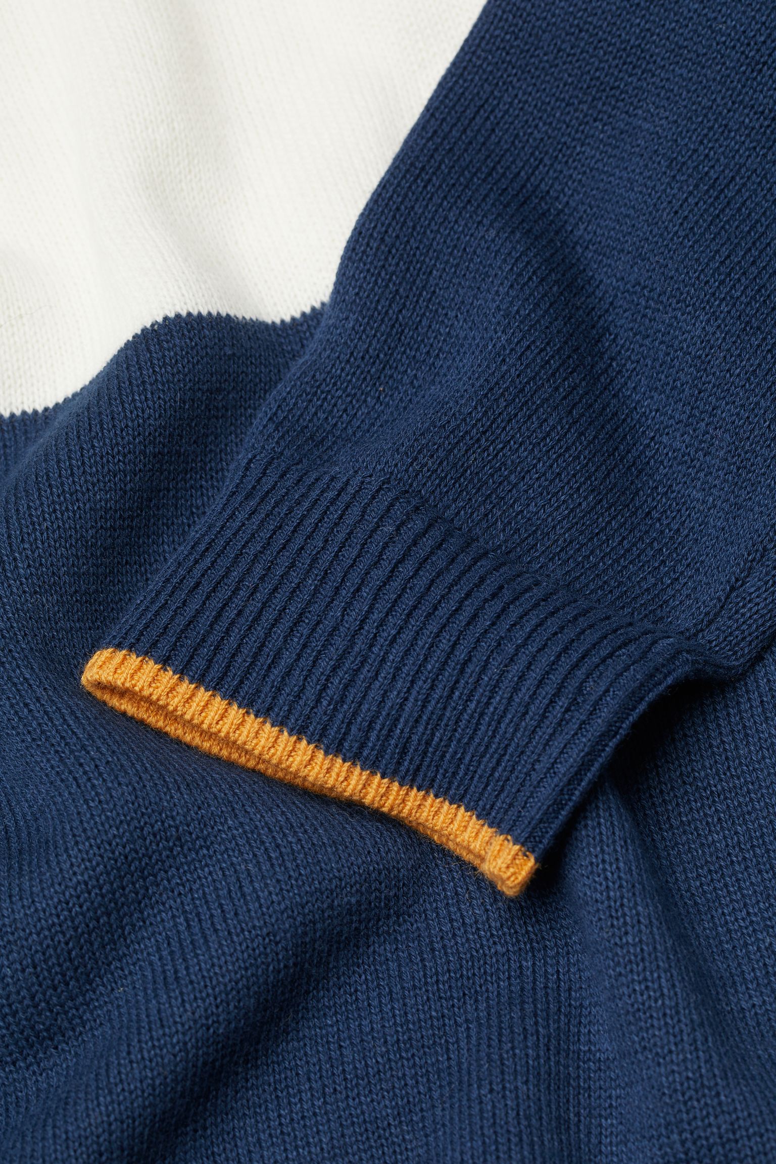 Jacquard-knit sweater in soft cotton fabric with long sleeves and ribbing at neckline, cuffs, and hem.