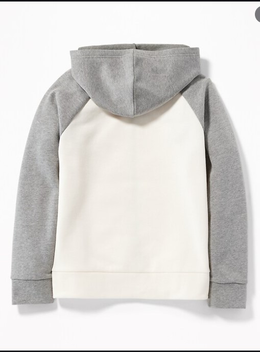 Soft-brushed fleece, with color-blocked hood and sleeves.