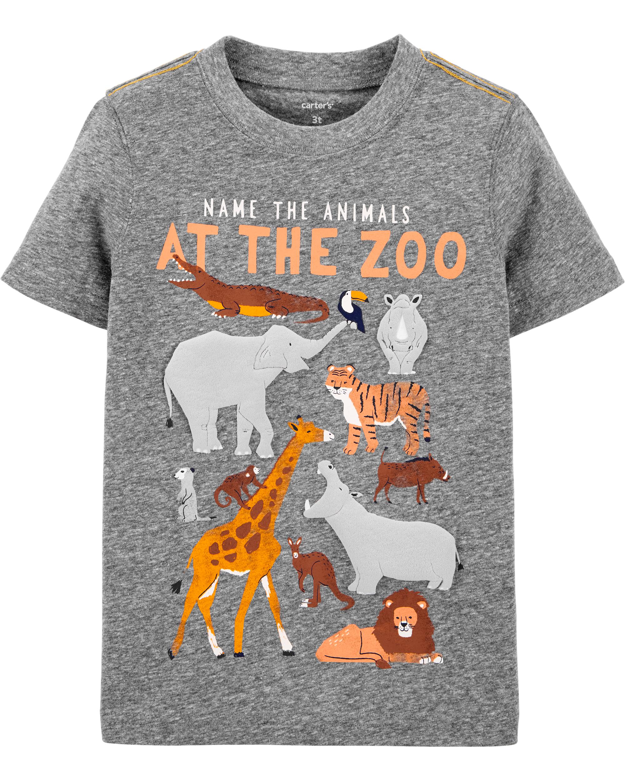 Complete with cute zoo animals and a coordinating slogan, this soft snow yarn tee is a year-round favorite.